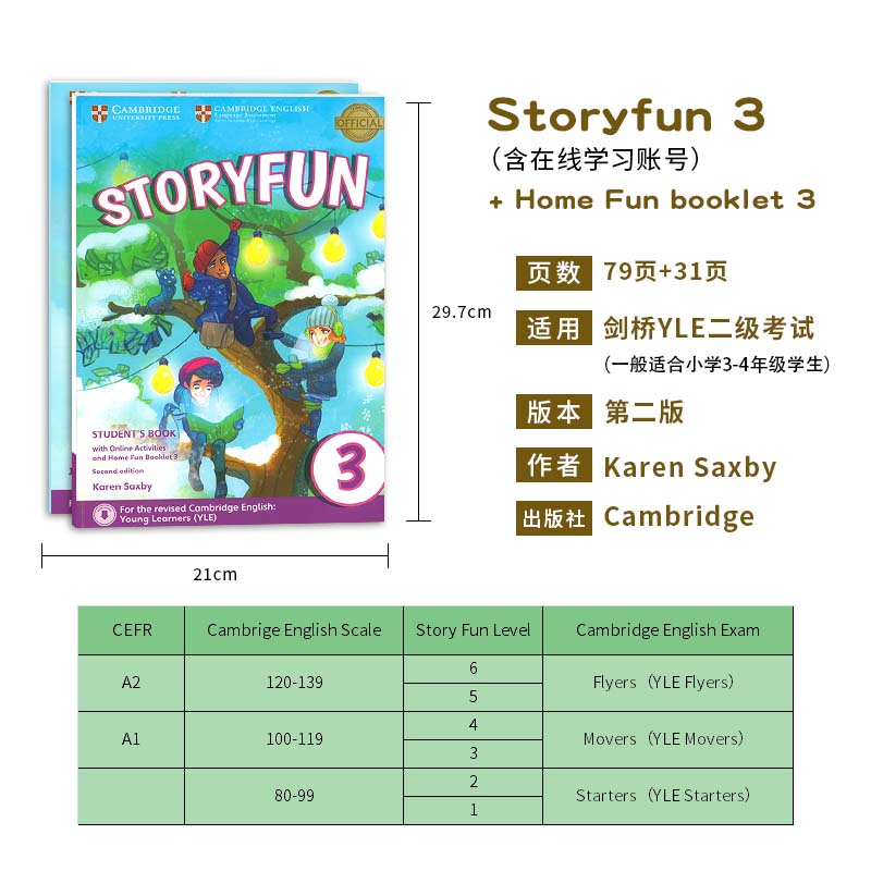 Story 剑桥少儿英语 包邮 3级别学生用书带在线自学账号和练习册Storyfun fun Cambridge 第二版 YLE二级考试书官方教材 原版 现货