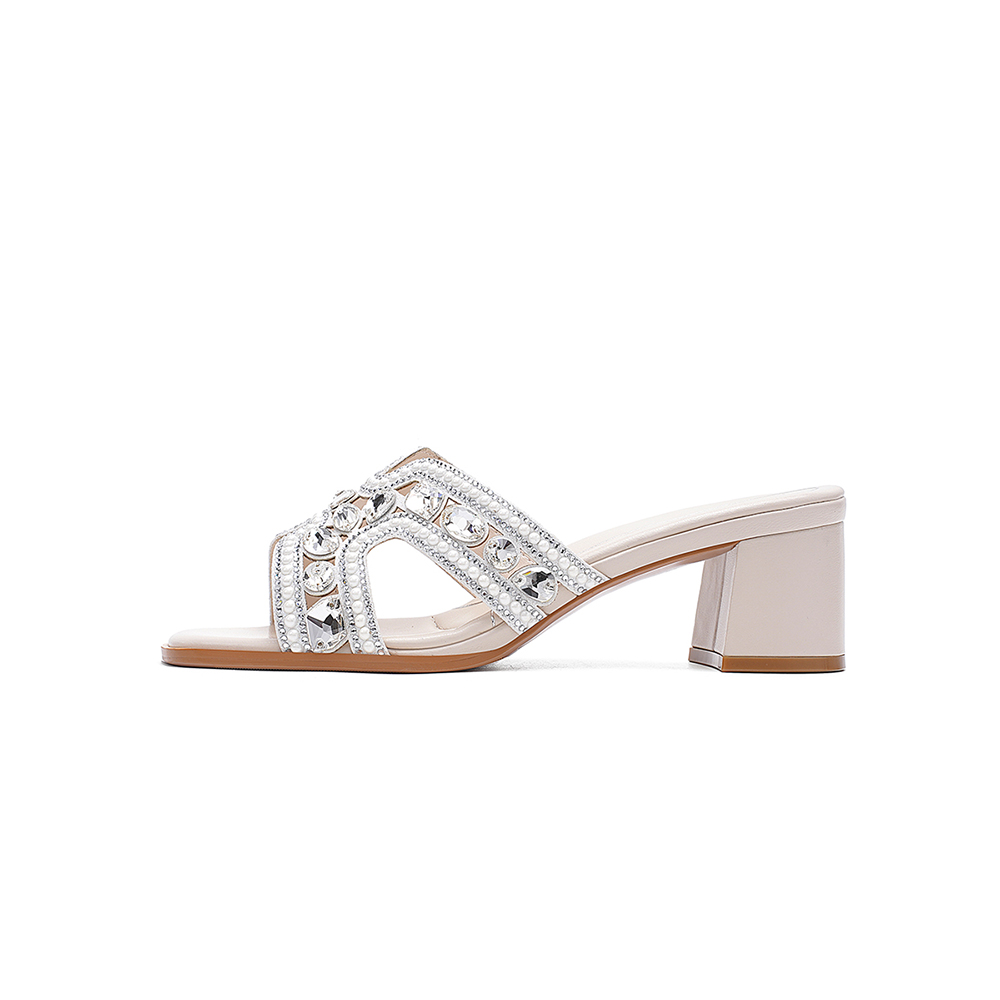 轻奢水钻一字粗跟拖简约半拖鞋 诺贝达女凉鞋 法式 新款 RM247508 夏季