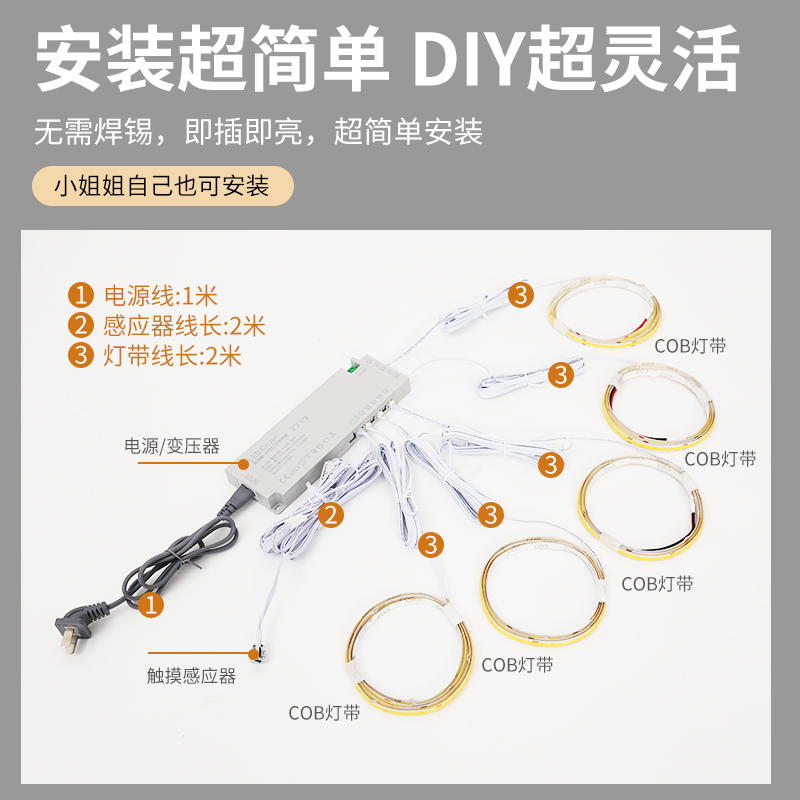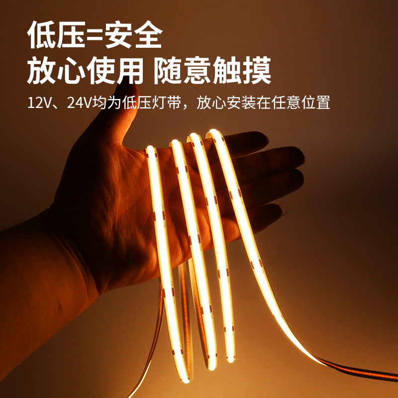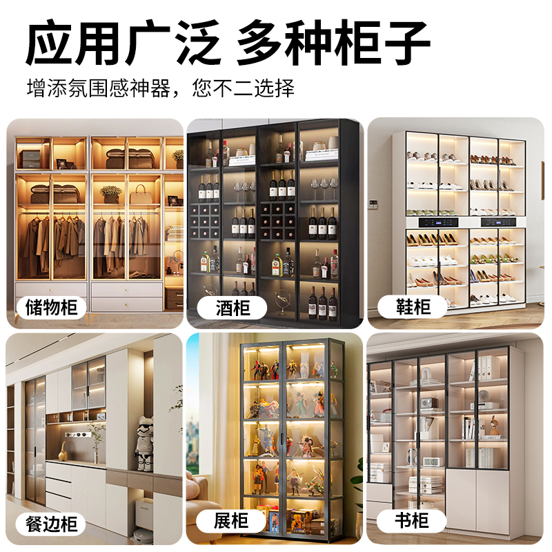 橱柜低压cob灯带自粘免开槽衣柜酒柜书柜展示柜手办柜感应线条灯