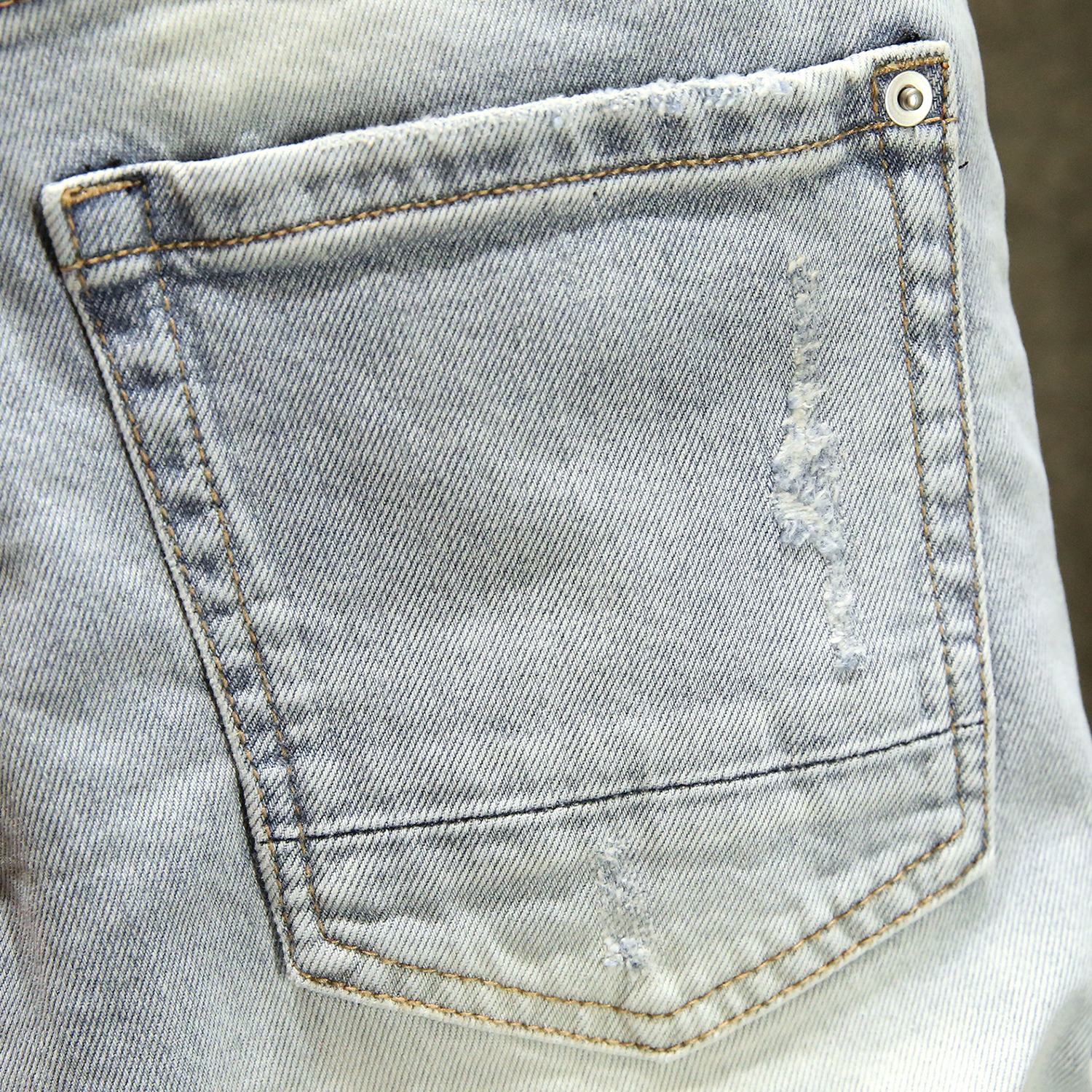 潮流痞帅刮烂补丁五分裤 2025新款 中裤 男夏季 潮 浅蓝色破洞牛仔短裤