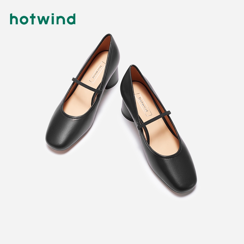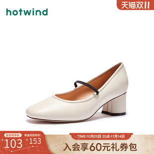 纯色通勤高跟女鞋 热风秋季 温柔粗跟浅口单鞋 女士时尚 新款