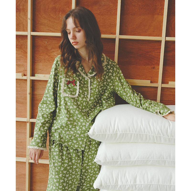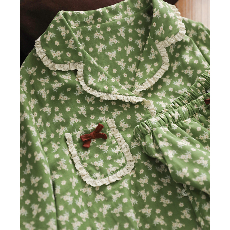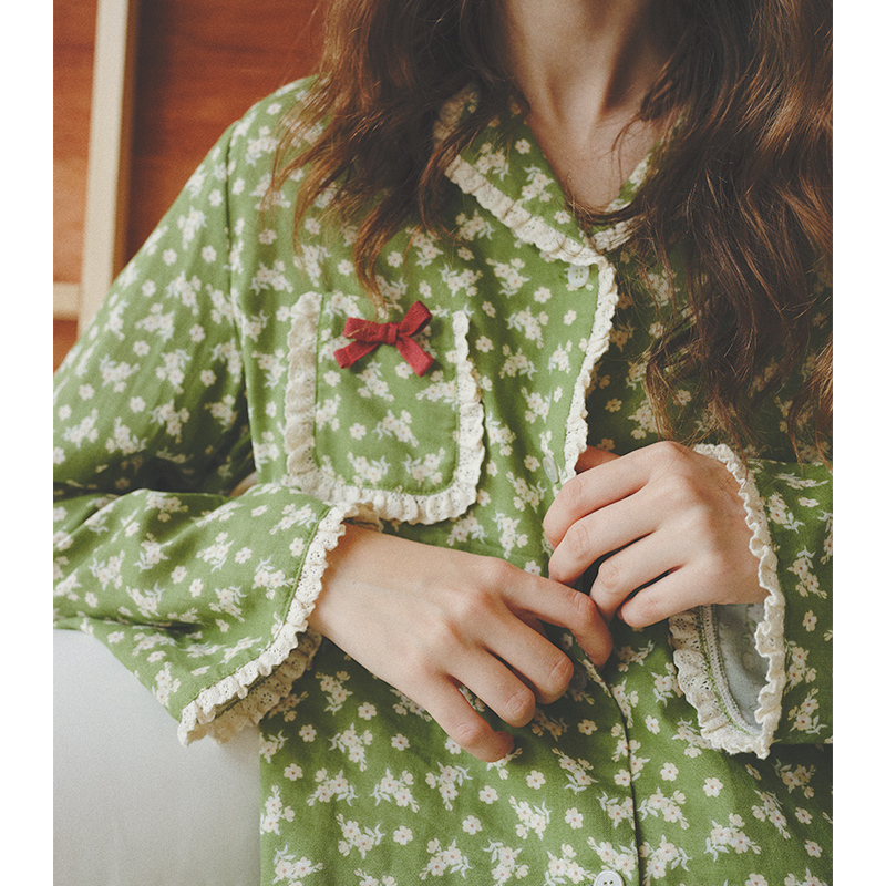春季 MollyRosa抹茶绿 家居服2025新款 长裤 碎花睡衣纯棉双层纱长袖