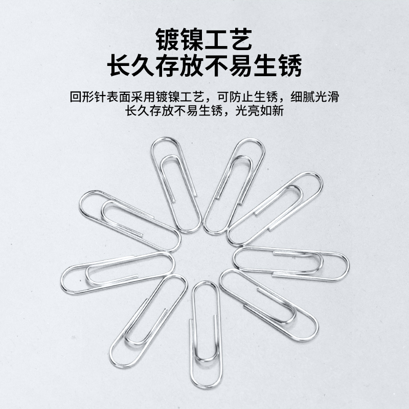 Deli得力 金属回形针办公加厚电镀表层曲别针文件固定纸张用三针一钉学生手工文具书签大头针u型区别回型针