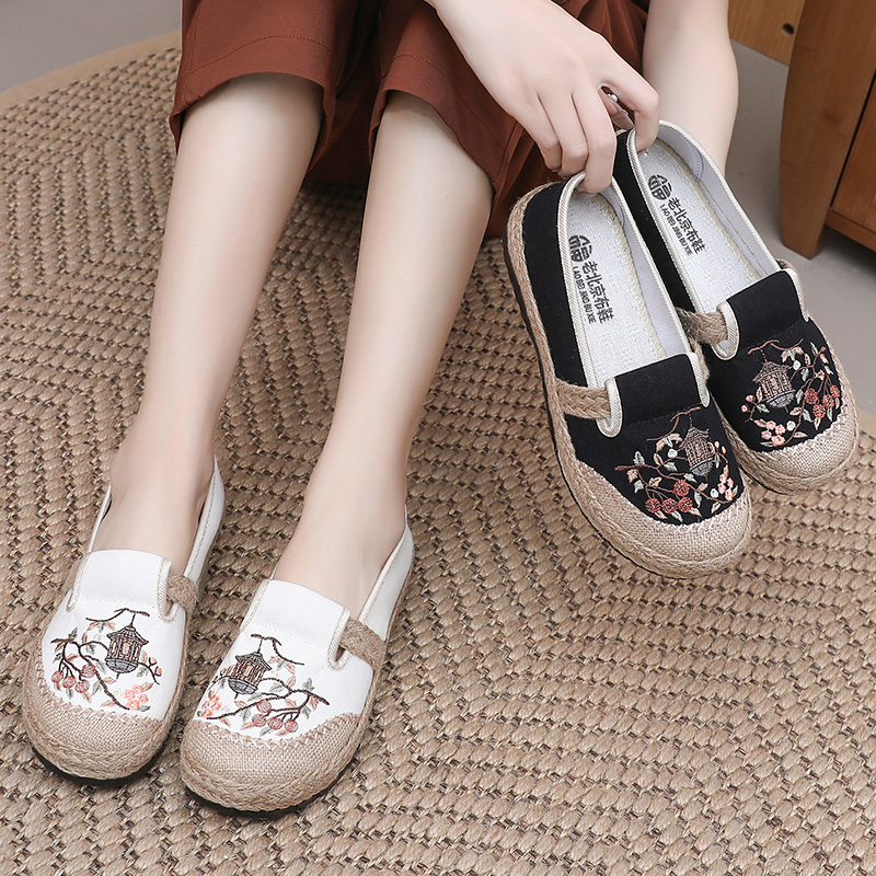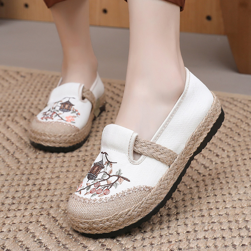 汉服鞋 老北京布鞋 厚底软底舒适国风女鞋 民族风绣花鞋 女亚麻渔夫鞋