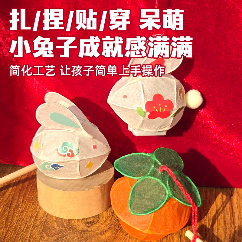 手工diy迷你灯笼剪纸非遗花朵材料儿童全套装 兔子柿子灯女孩礼物
