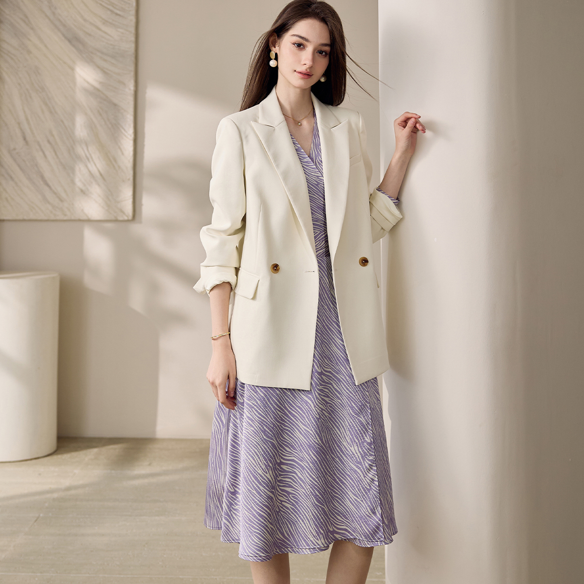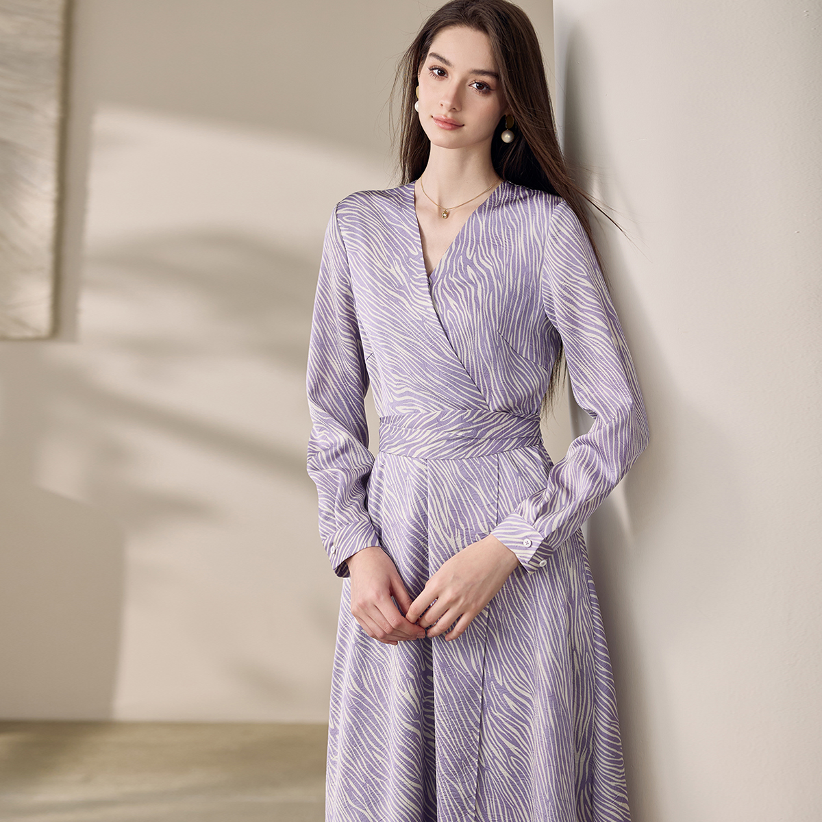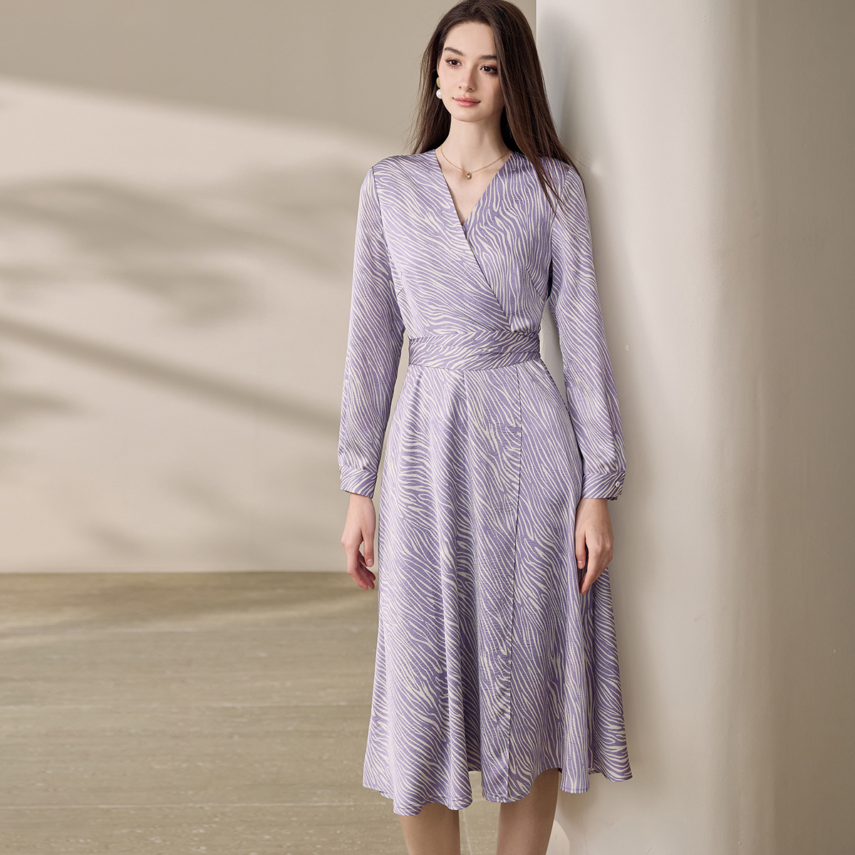 罗衣气质浅紫色肌理感连衣裙女2025秋季 优雅印花大摆裙11852 新款