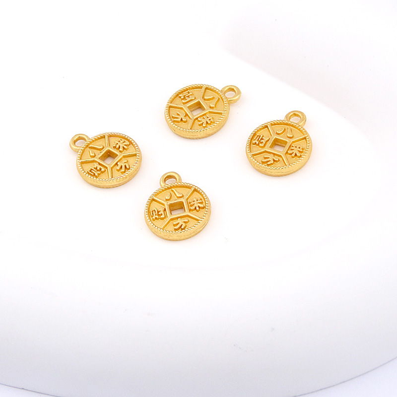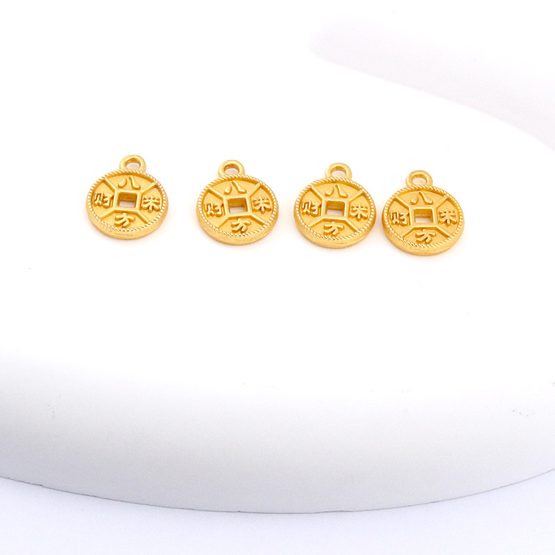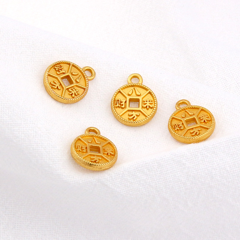 古法金吊坠八方来财DIY手工挂件项链通孔配件串珠哑金饰品配件