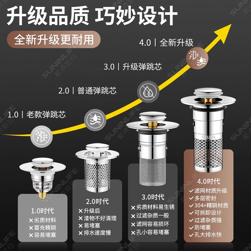 洗脸盆漏水塞洗面盆弹跳芯下水器防虫防臭防堵洗手池过滤按压网芯