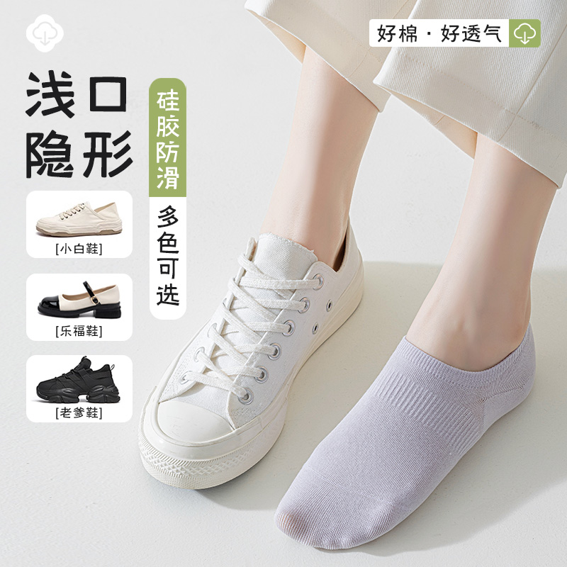 浅口隐形袜女士短袜 防滑不掉跟纯棉吸汗春秋款 袜子女船袜夏季 薄款