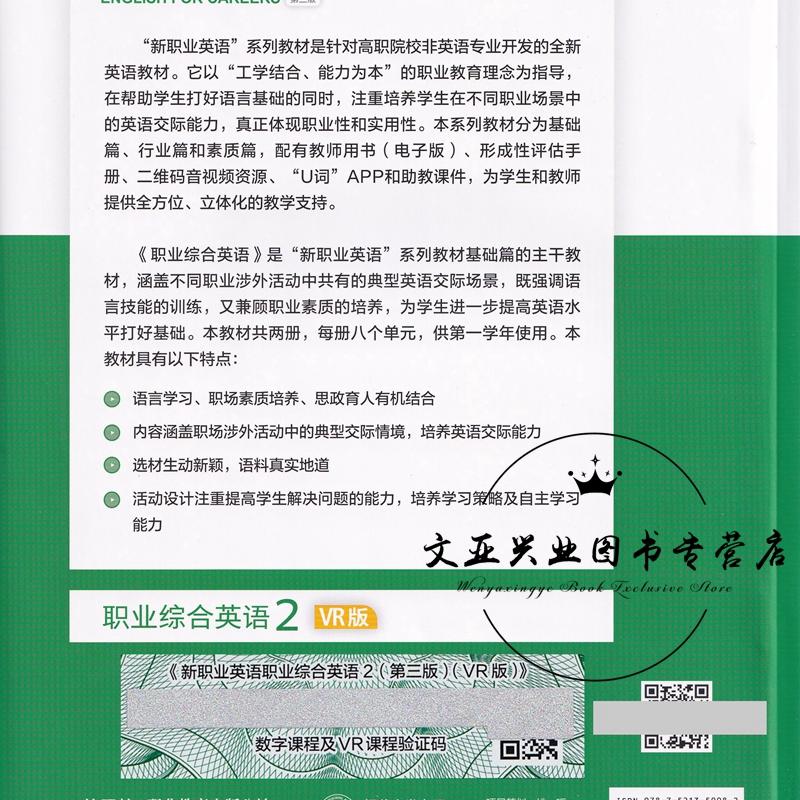 第三版 外研社 职业综合英语2VR版 含数字课程及VR课程验证码 9787521350982 含VR手册 新职业英语基础篇
