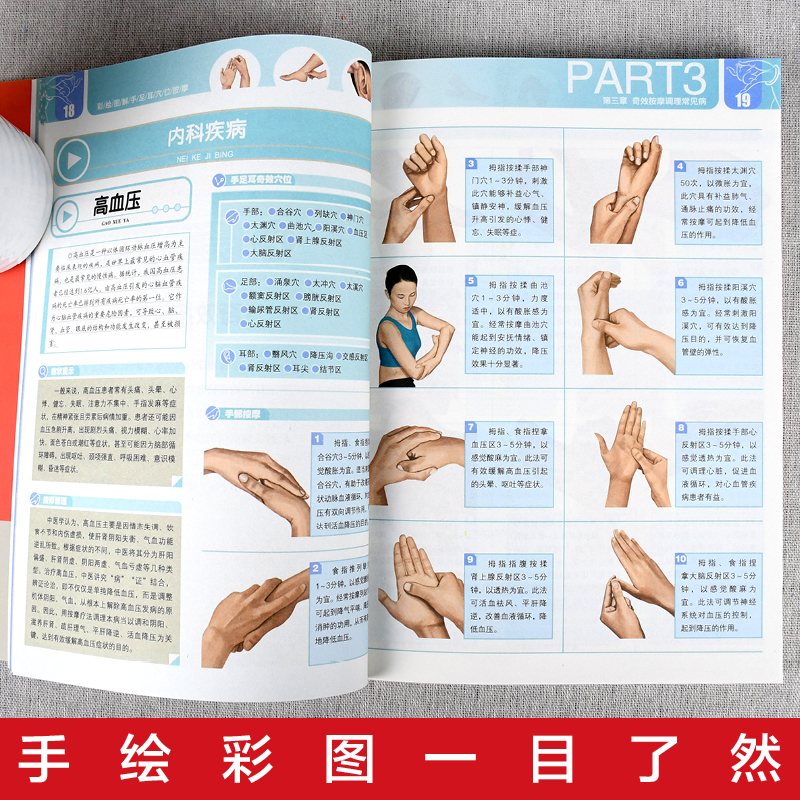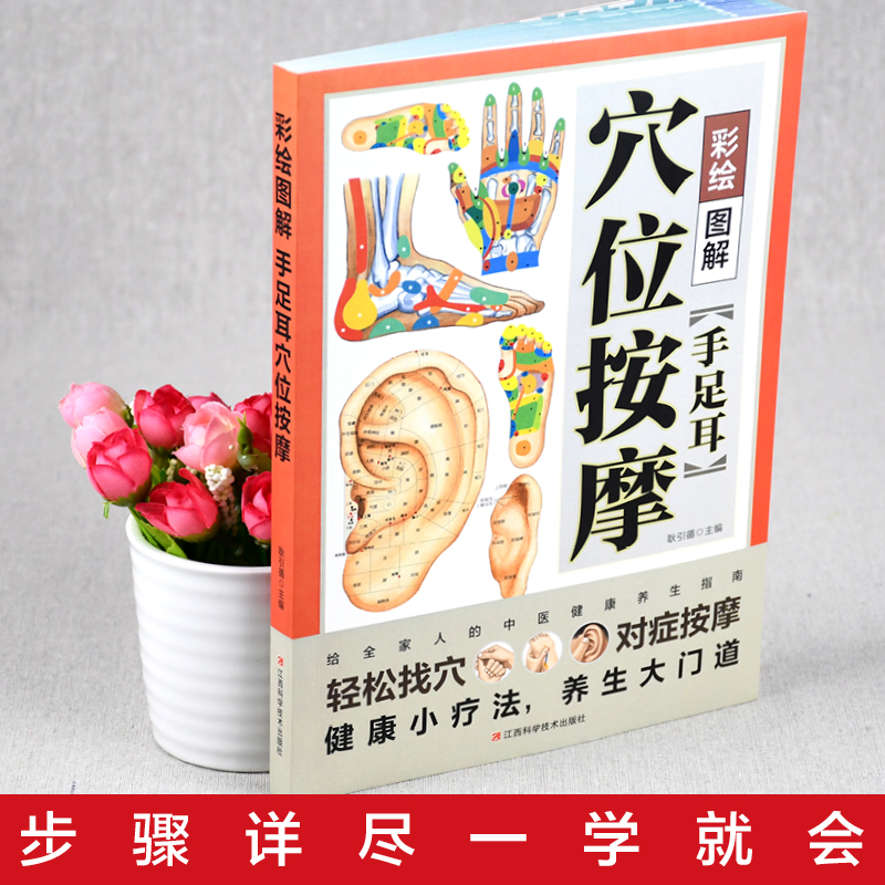 彩绘图解手足耳穴位按摩正版 人体穴位经络图 书籍 经络穴位按摩大全书籍 中医穴位书籍中医推拿按摩书 轻松找穴对症按摩 正版