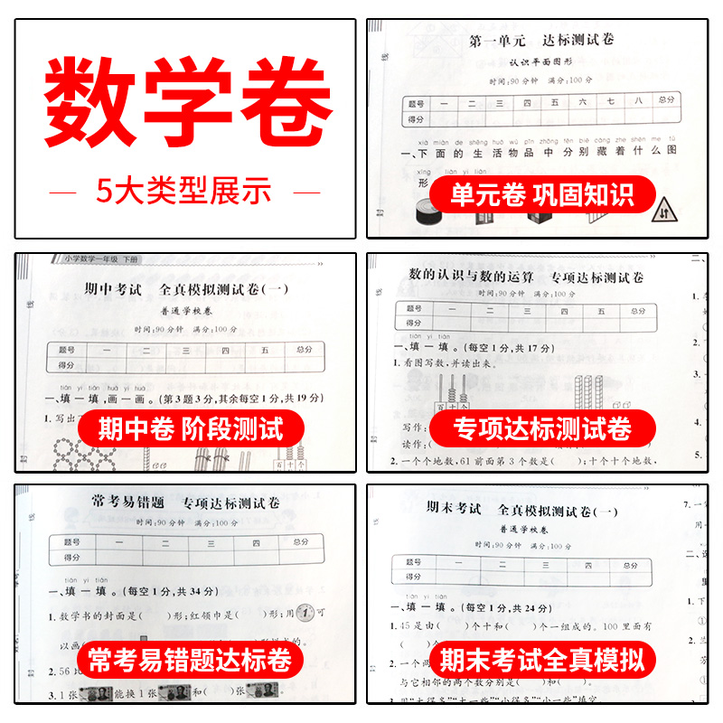 期中期末冲刺100分全优模拟考试卷子教材同步训练习册习题 小学生1年级下单元 2025新版 一年级上册下册试卷全套测试卷语文数学人教版