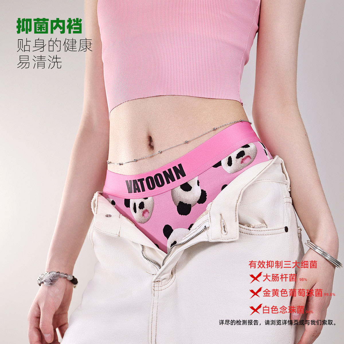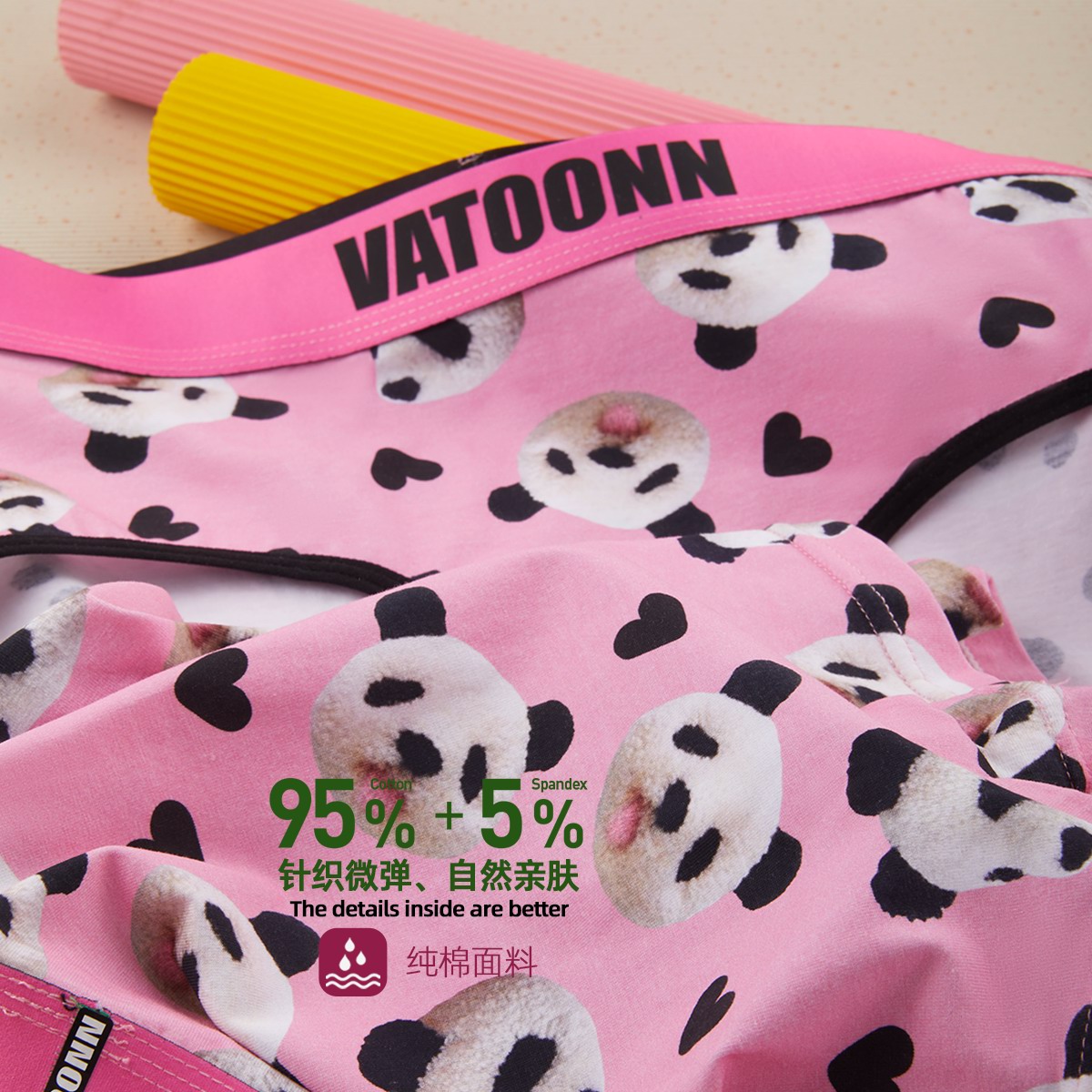 情侣印花棉内裤 粉熊猫卡通男平角女三角高弹收腹宽腰带抗菌裆大码