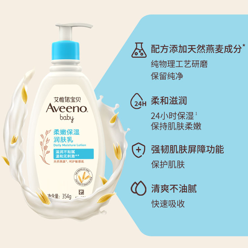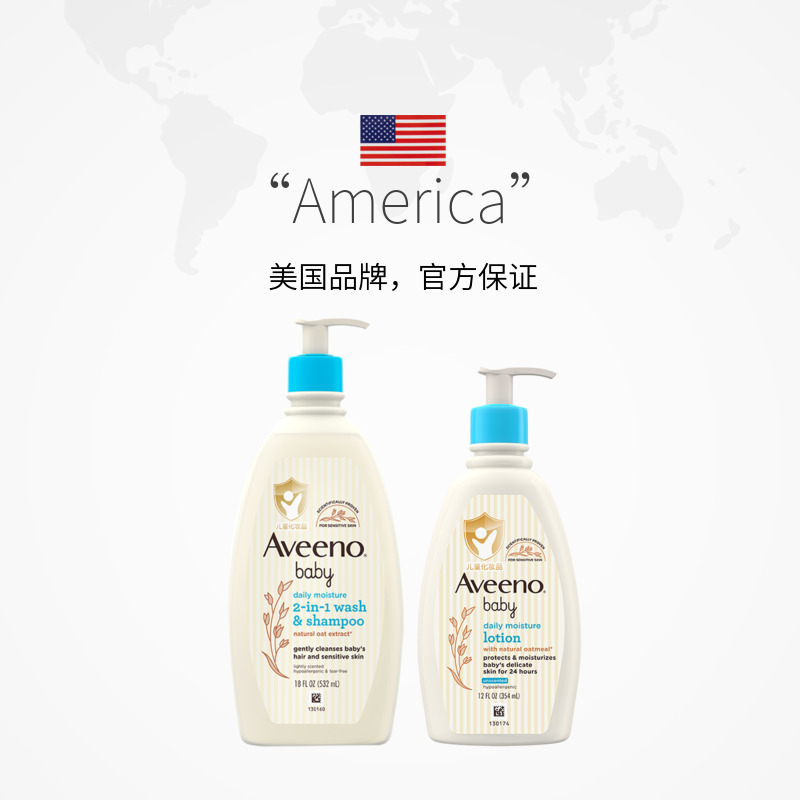 532ml Aveeno艾维诺婴儿儿童洗发沐浴露 润肤乳354ml套装 自营