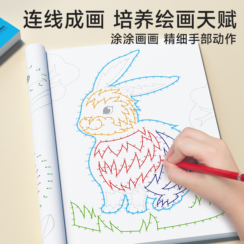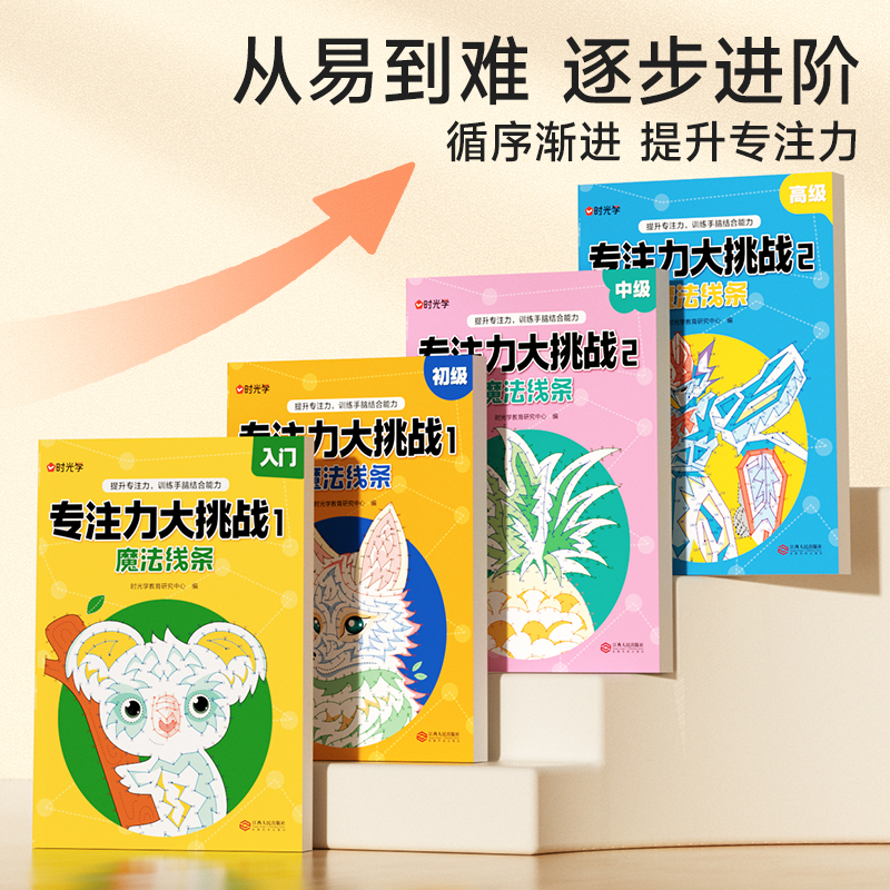 时光学专注力大挑战魔法线条益智书涂色绘本儿童数字连线画本启蒙