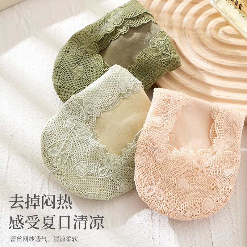袜 防滑不掉跟高跟鞋 蕾丝船袜女夏季 新疆棉吸汗透气浅口隐形袜薄款