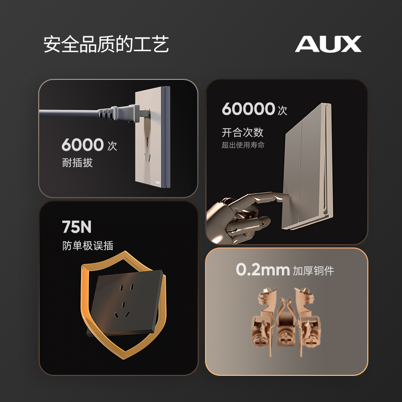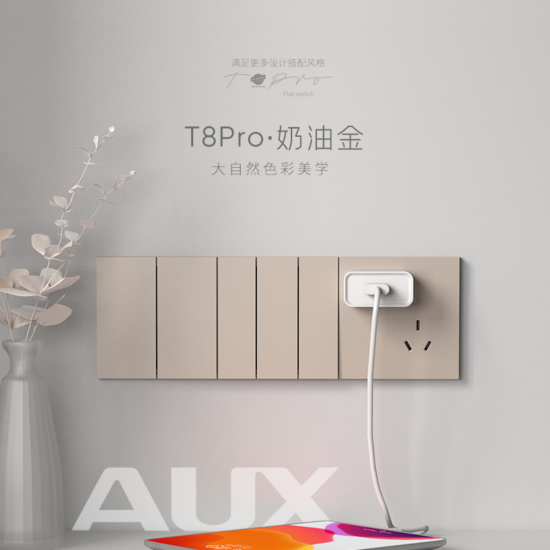 AUX奥克斯开关插座面板86型家用电源暗装 超薄白色一开五孔奶油风