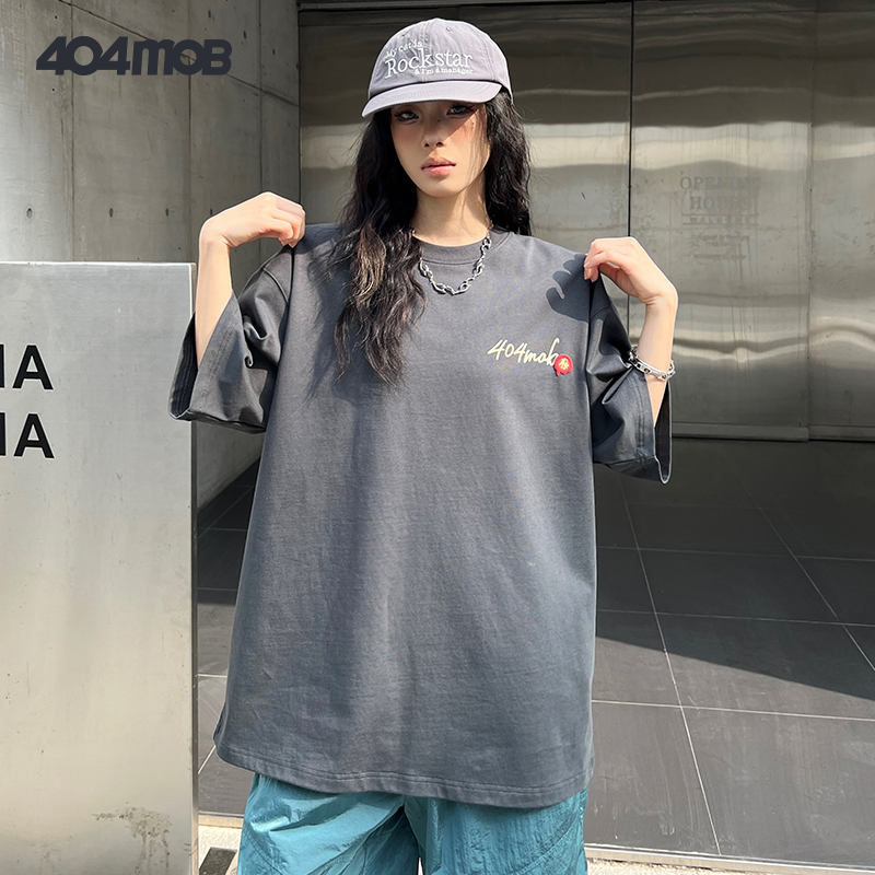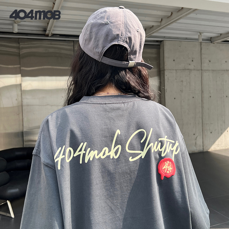 T恤男打底衫 发泡印花短袖 404MOB美式 潮牌情侣宽松上衣t 罗正同款