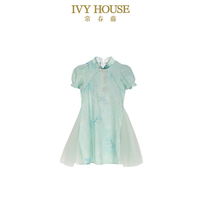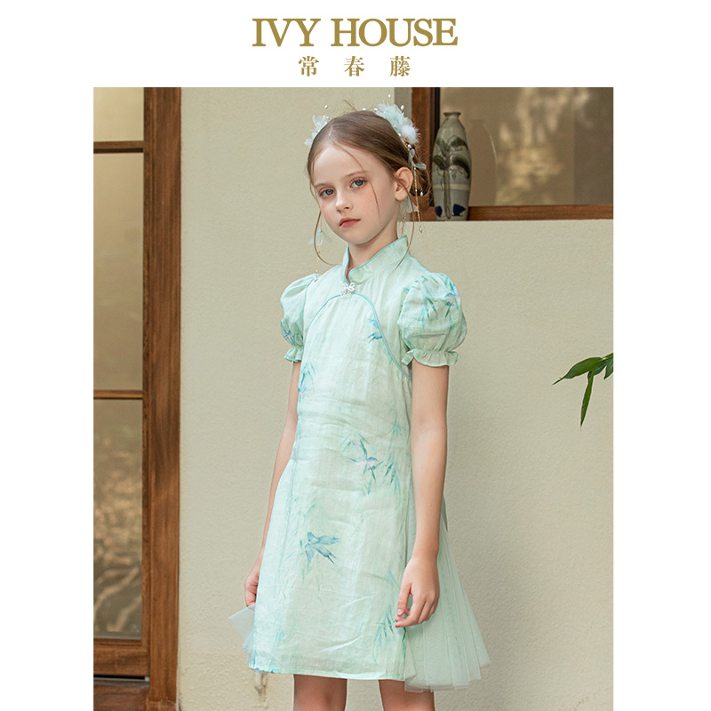 棉麻新中式 IVY 新款 女童夏季 印花连衣裙国风旗袍 HOUSE常春藤童装