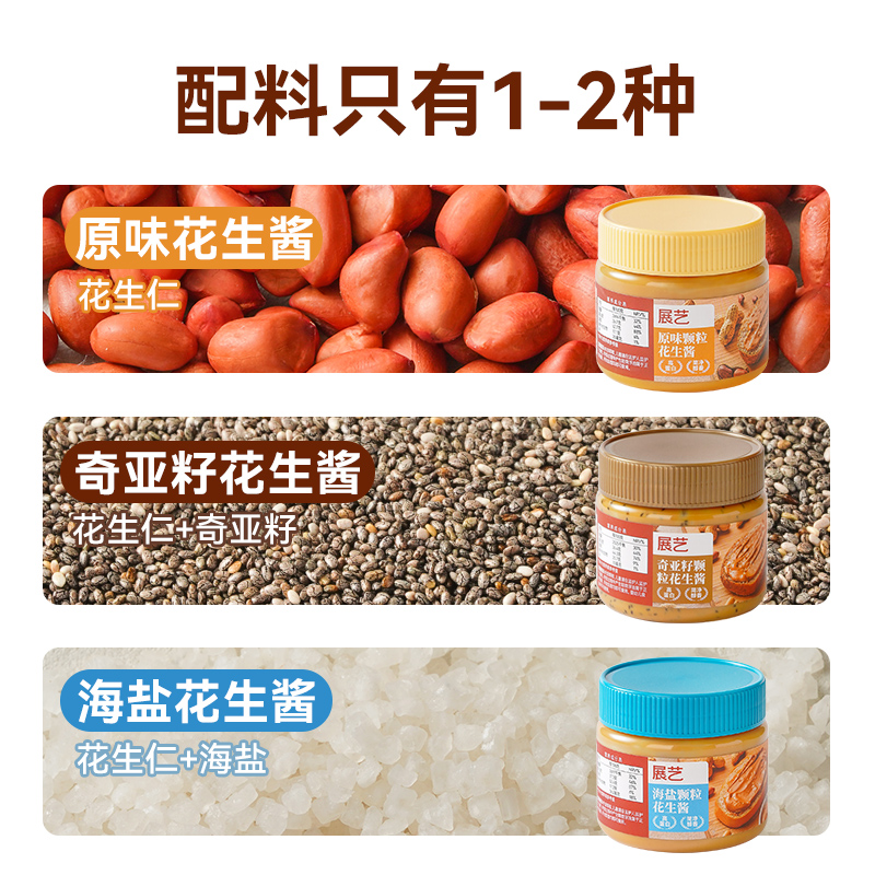 展艺原味海盐奇亚籽颗粒花生酱面包抹酱拌面烘焙原料 包邮