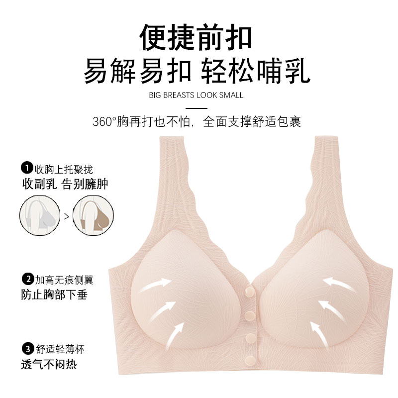内衣女 波波前扣无痕宽吊带显小文胸罩大码 虞书欣同款 ubras无尺码