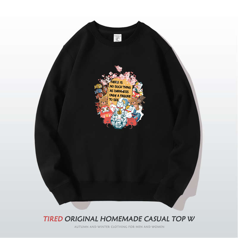 灰色圆领加厚无帽上衣 羊羔毛外套男士 CHINISM赤尘 加绒卫衣男新款