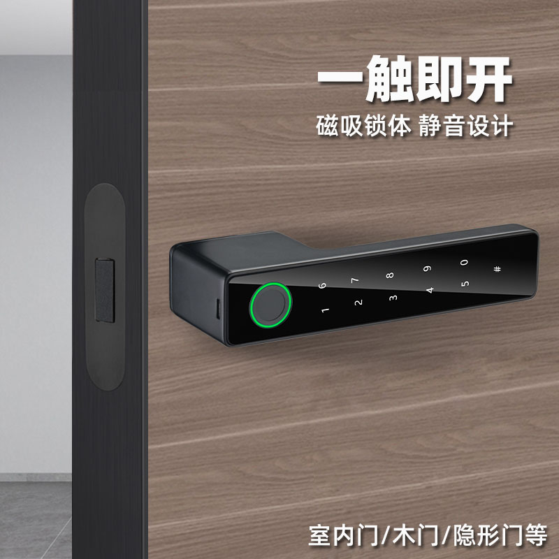 极简门锁指纹密码 锁室内木门智能把手锁现代简约生态门磁吸静音