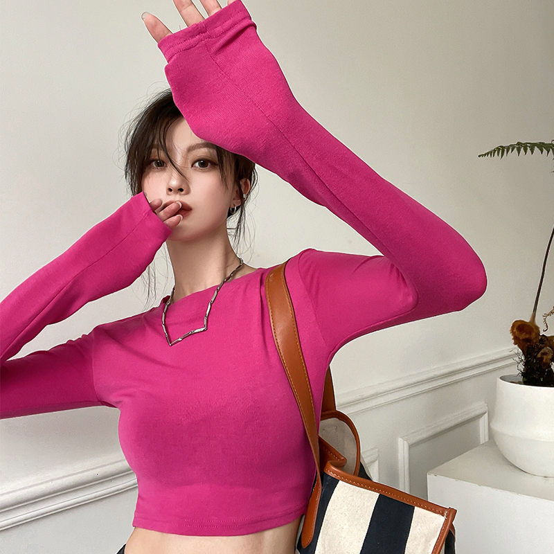 打底衫 长袖 显瘦 高腰露脐紧身短款 2023纯色上衣潮ins辣妹t恤女秋季