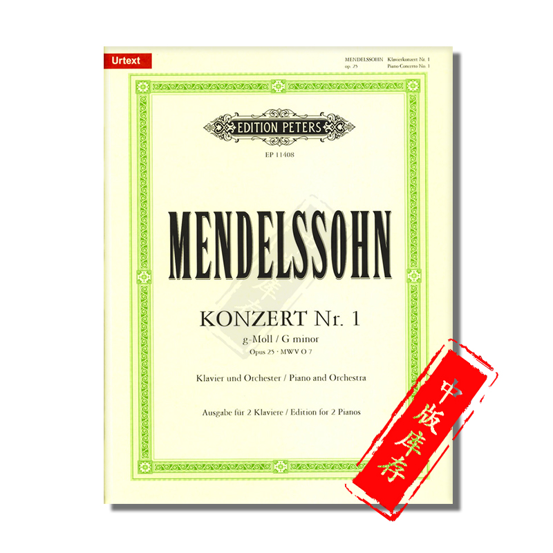G小调 双钢琴 MWVO7 门德尔松 彼得斯原版 No1 Concerto op25 Mendelssohn 乐谱书 EP11408 Minor 净版 钢琴协奏曲