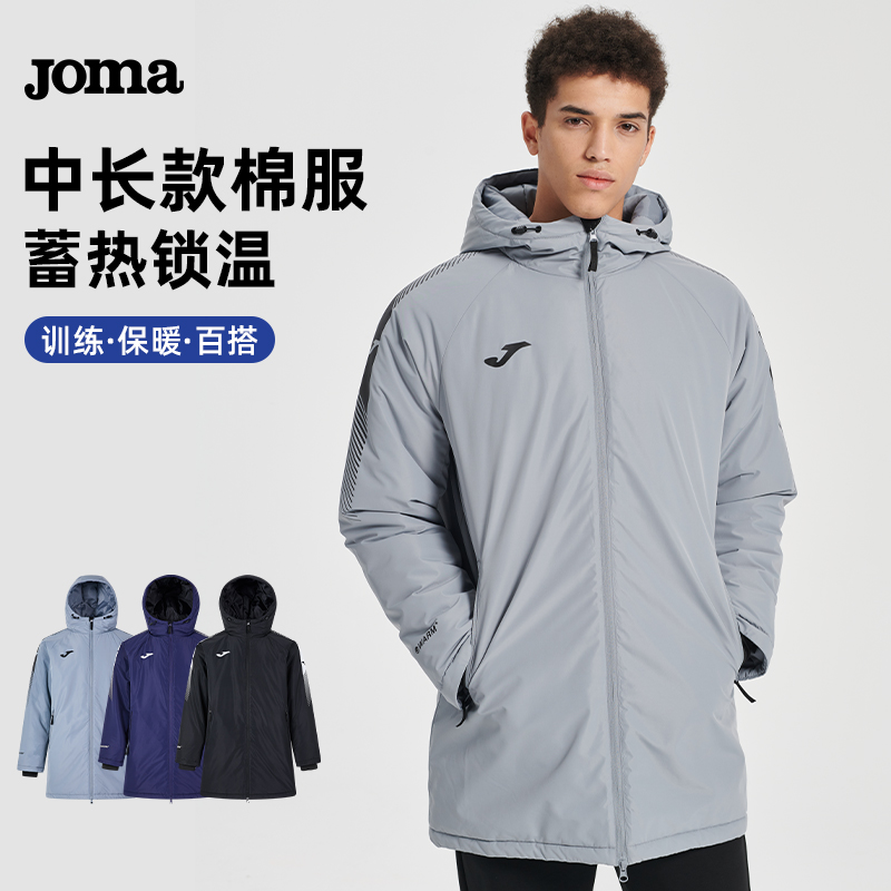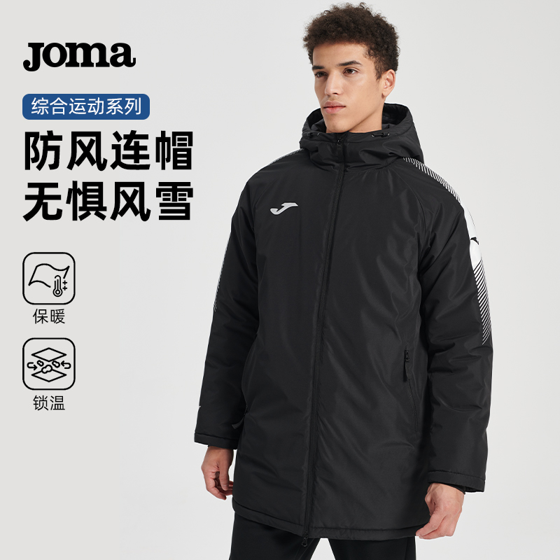 冬季 新款 防风保暖连帽运动棉服跑步外套 棉衣男秋季 Joma荷马中长款