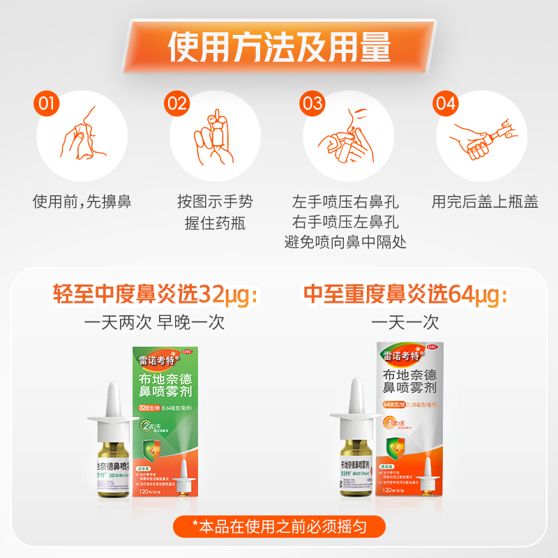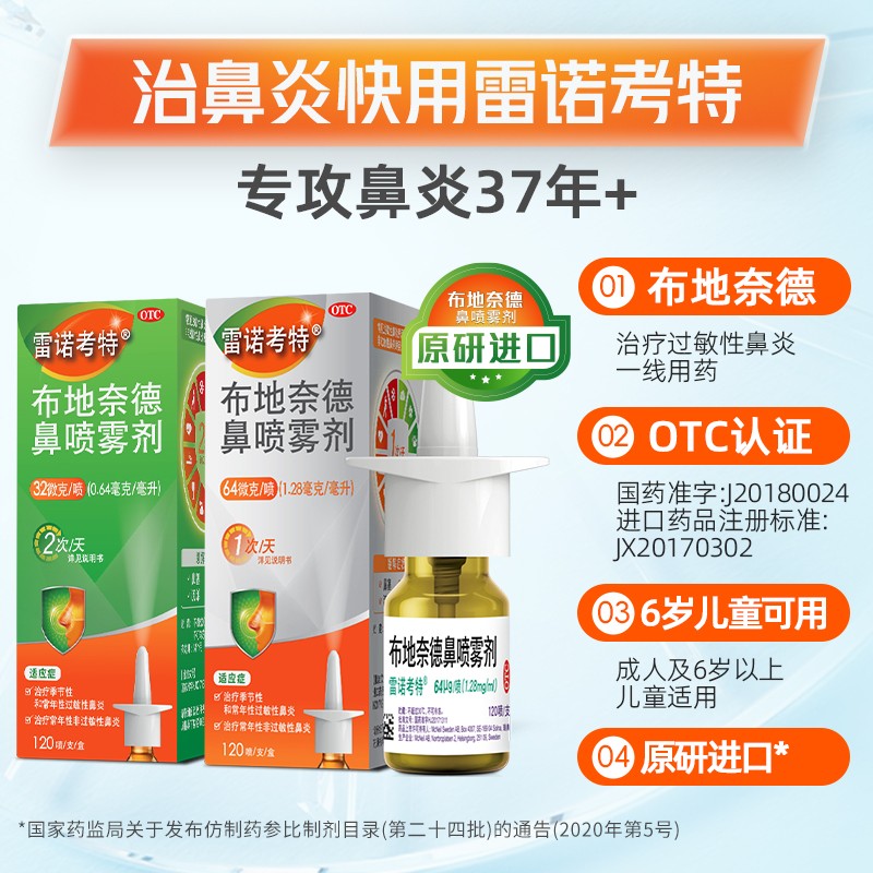 雷诺考特布地奈德鼻喷雾剂旗舰店过敏性鼻炎鼻塞流鼻涕软膏原研药