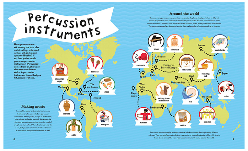 音乐启蒙 英文原版 World the 80种乐器 百科知识 全世界 Around Instruments Musical 英语儿童进口绘本 6岁以上 预售