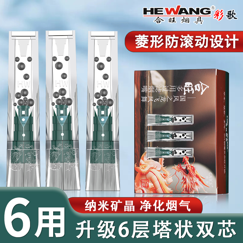 彩歌一次性烟嘴过滤器粗中细支六通用男士 双芯活性炭焦油过滤烟嘴