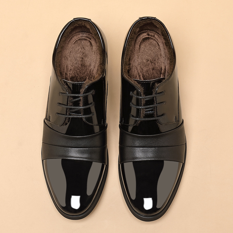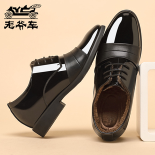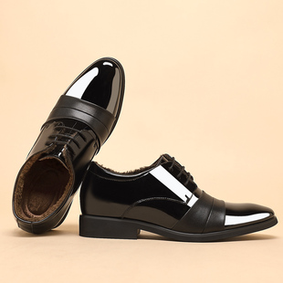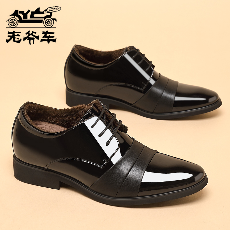 二棉内增高婚鞋 德比鞋 男真皮英伦漆皮商务西装 老爷车加绒保暖皮鞋