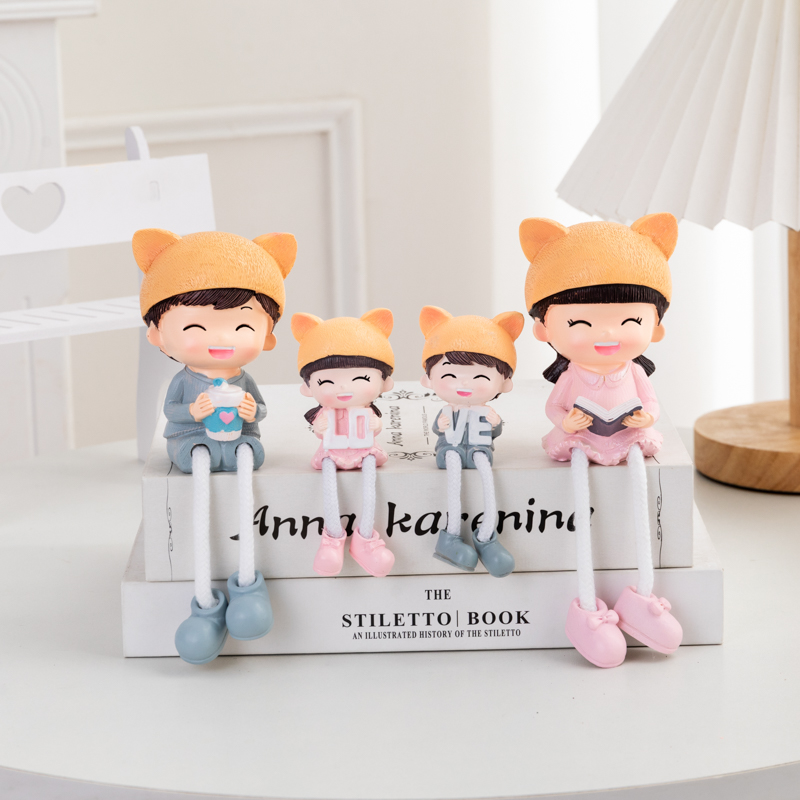 快乐一家四口墙面隔板轻奢软装 饰礼物摆件 吊脚娃娃女生可爱家居装