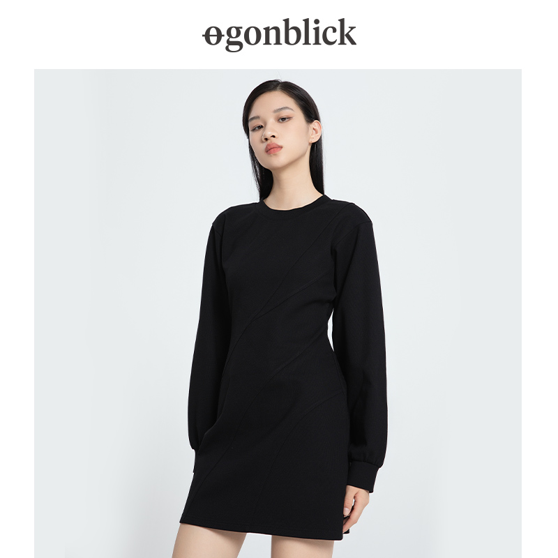 北欧时刻抽绳连衣裙女高腰收腰显瘦气质黑色长袖 打底裙长裙子春季