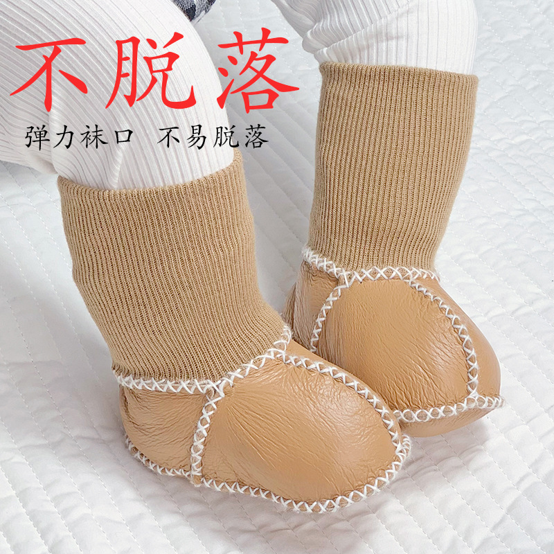 1周岁新生儿男女宝宝防掉步前鞋 加绒保暖棉鞋 秋冬季 婧麒婴儿袜鞋