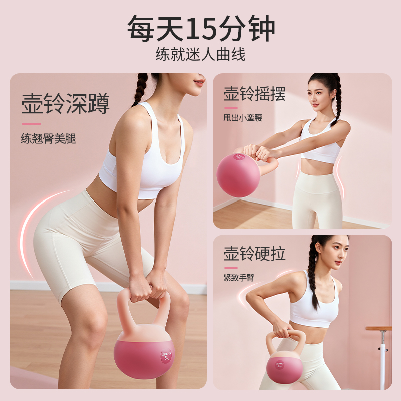 软壶铃女士哑铃健身器材家用男士 运动塑形深蹲翘臀神器提壶