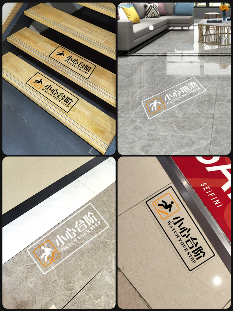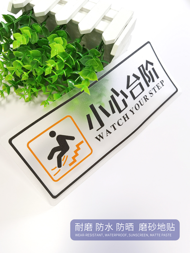 小心台阶地贴请注意安全标识牌地滑提示牌定制防水防滑阶梯警示贴纸质告示标语当心上下楼梯间温馨指示牌定制