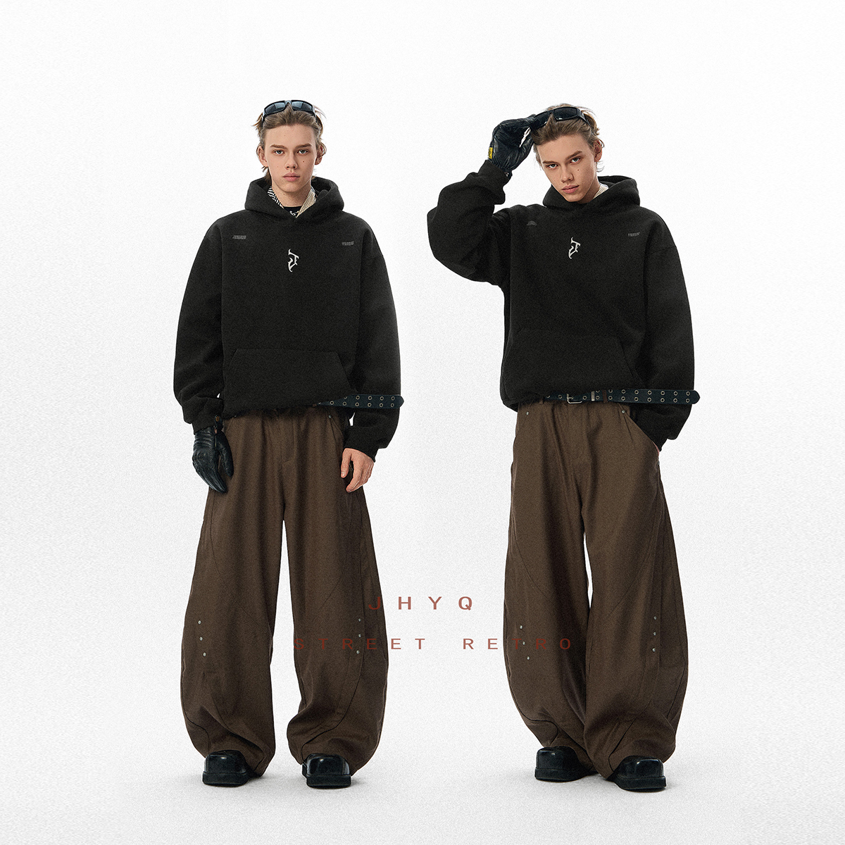 针织重磅400G帽衫 JHYQ美式 哥特J字母logo连帽基础卫衣男宽松美式