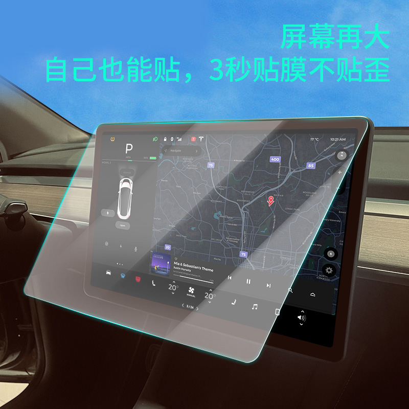T9电研社特斯拉model3 Y中控屏保护膜高清防爆抗指纹钢化膜焕新y3