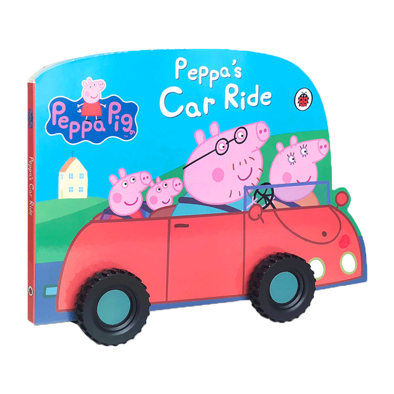 Car 亲子互动游戏书 小猪佩奇汽车造型书 轮子可转 粉红猪小妹纸板书 Ride Pig Peppa 绘本 英文原版