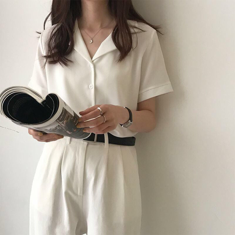 衬衫 别致小衫 女夏季 复古港风设计感小众工装 上衣 新款 洋气雪纺短袖