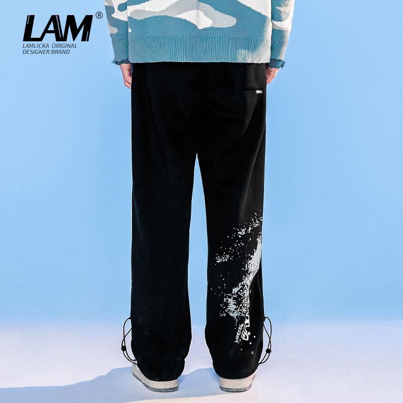ins潮牌直筒宽松长裤 新款 男 2024年春夏季 LAMLICKA字母印花休闲裤