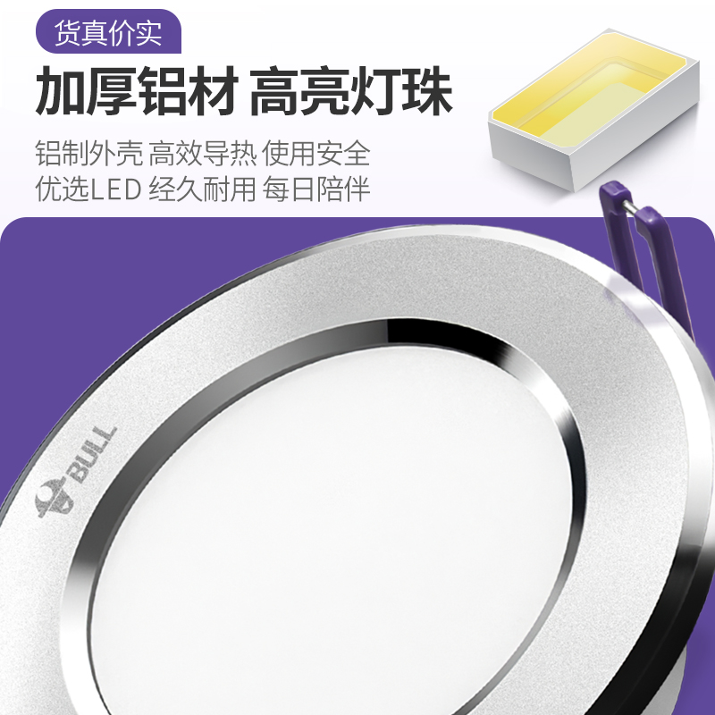 公牛筒灯嵌入式 射灯led天花孔灯家用客厅轻奢超薄桶灯圆形洞灯筒