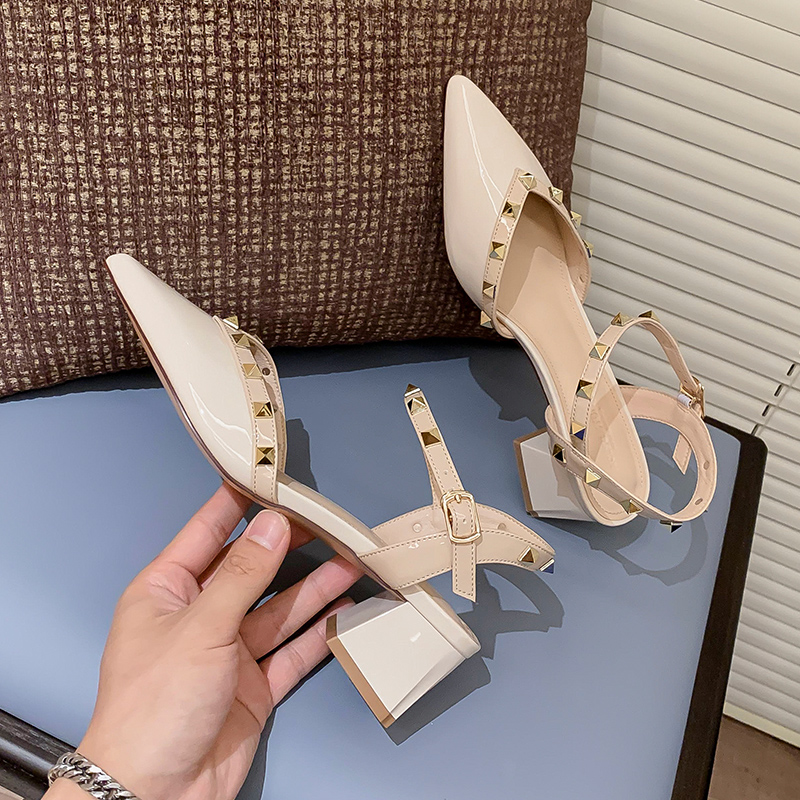 百搭包头玛丽珍鞋 艾斯臣尖头凉鞋 网红铆钉粗跟单鞋 新款 女2024夏季