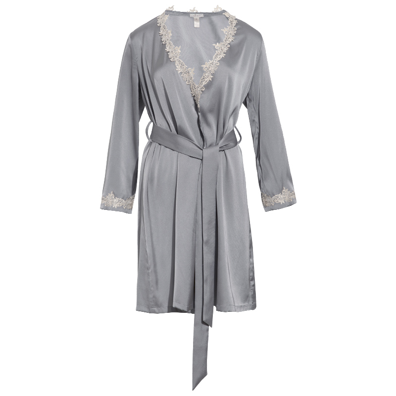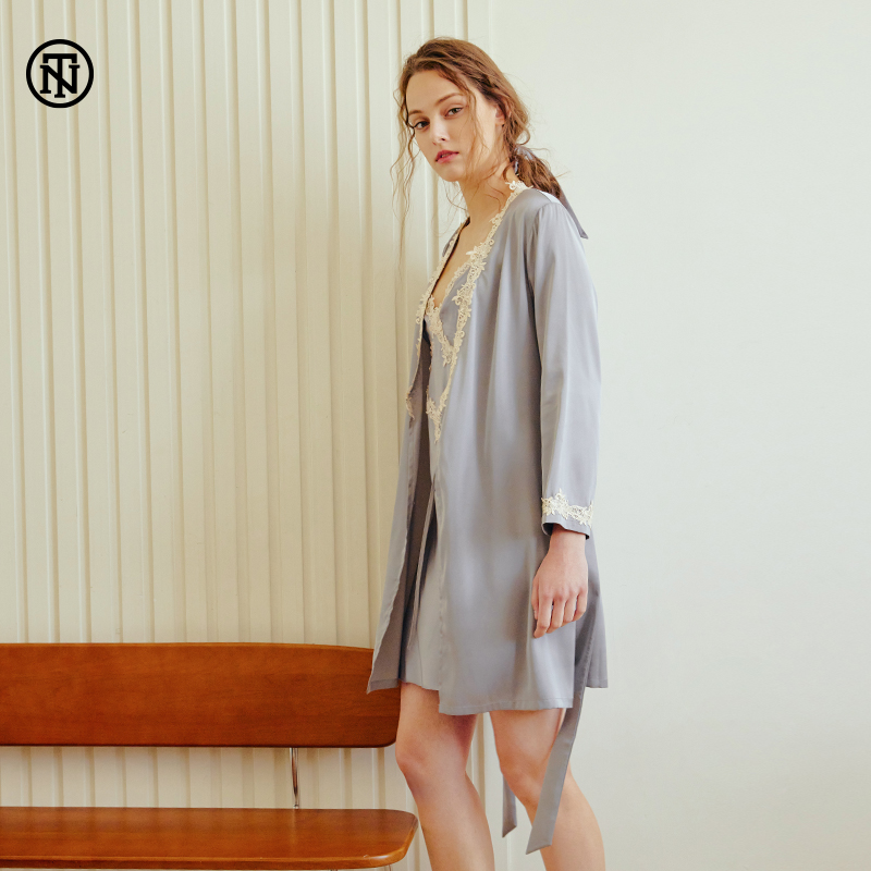 NoirTease奈黎诗春夏性感丝质睡袍女薄款 蕾丝系带浴袍睡衣家居服