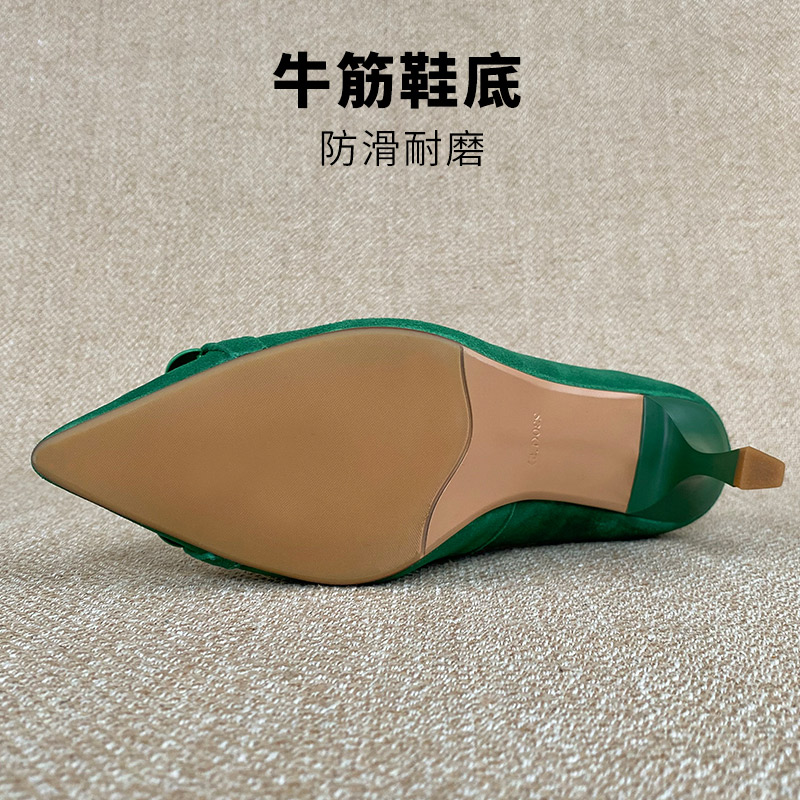 女细跟气质优雅尖头浅口磨砂羊皮软底防滑女鞋 夏款 清爽绿色高跟鞋
