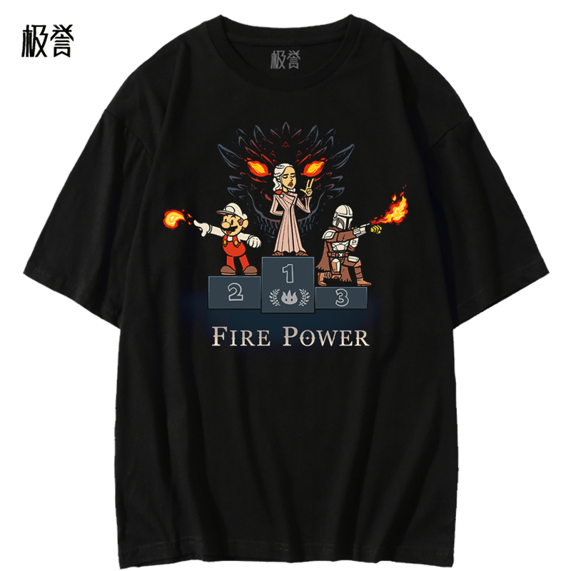极誉2022新款 T恤男潮宽松 火焰魔法坦格利安曼达洛人印花纯棉短袖