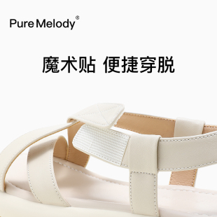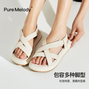 真皮平底绑带百搭魔术贴女鞋 PM罗马凉鞋 仙女风法式 夏季 2025女新款
